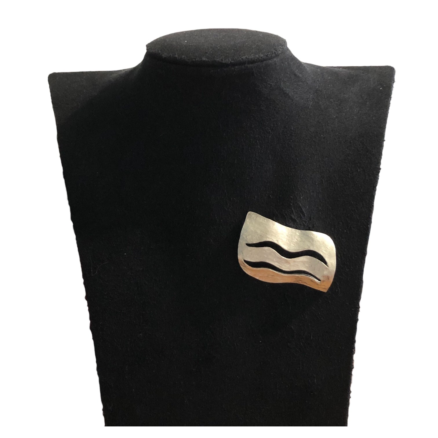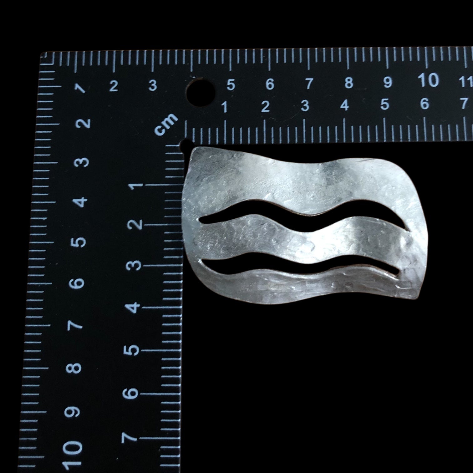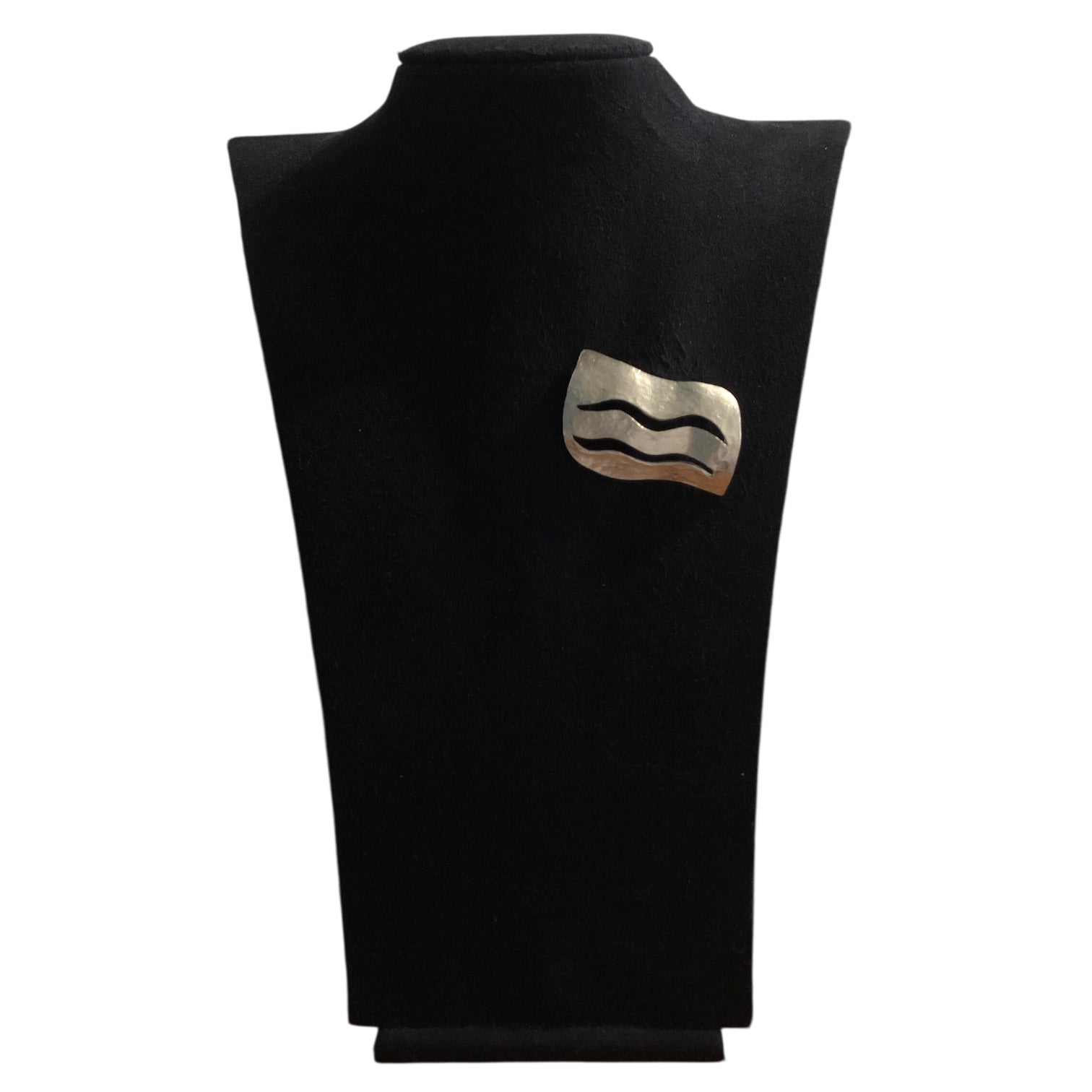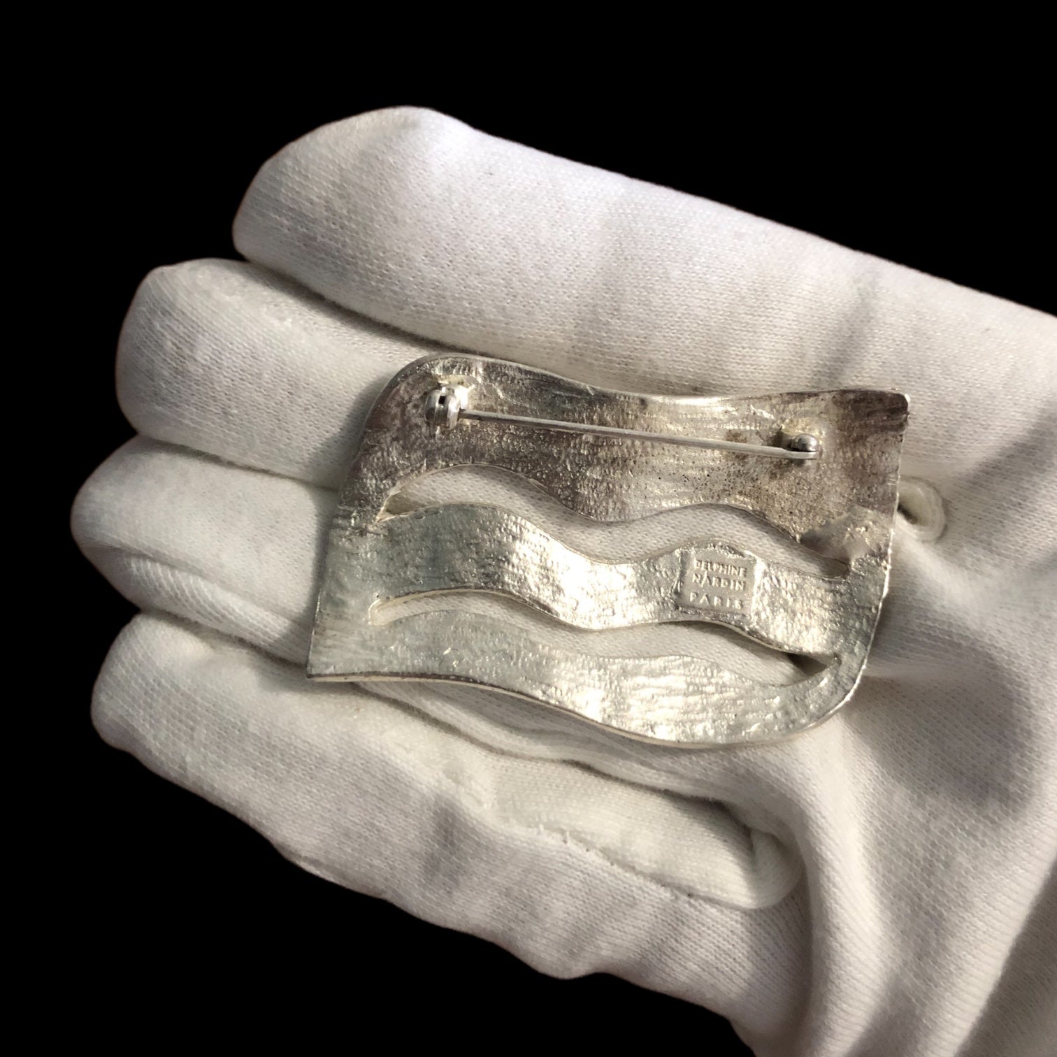 Brooch signed Delphine Nardin, vintage from the 1980s–1990s. Crafted in silver-tone metal with a hammered finish, featuring strong presence and a bold style. Signed on a stamped plaque at the back. In excellent condition. Dimensions visible in the photo. Ideal for a gift, a collection, or to complete a retro-chic look.