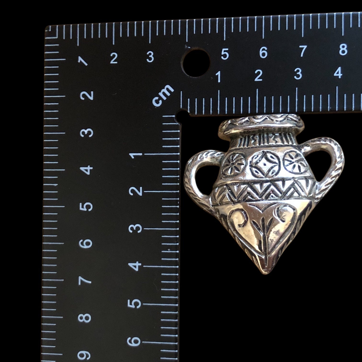 Vintage clip-on earrings from the 1970s, signed Jean Louis Scherrer and made by the Robert Goossens workshop. The atelier’s distinctive craftsmanship is evident in both the metalwork and the signature plaque. Crafted in silver-tone metal, they feature an antique vase shape. In excellent condition. An oversized, highly couture and rare model, from a Parisian collection. Dimensions visible in the photo. Ideal to complete a collection, as a gift, or to make a bold, fashion-forward statement.