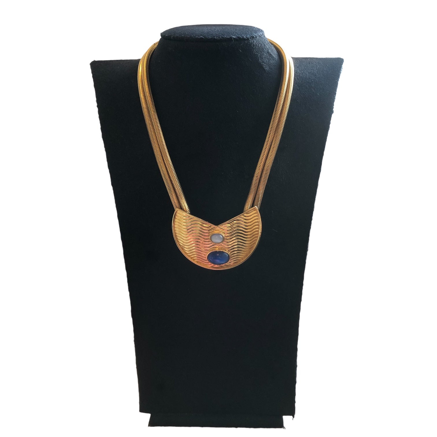 Necklace signed Lanvin Paris, vintage from the 1980s. Crafted in gold-tone metal and adorned with glass stones, it features a very couture style. In excellent condition, it is a true collector’s piece. Perfect for a gift or to complete a chic and stylish look.